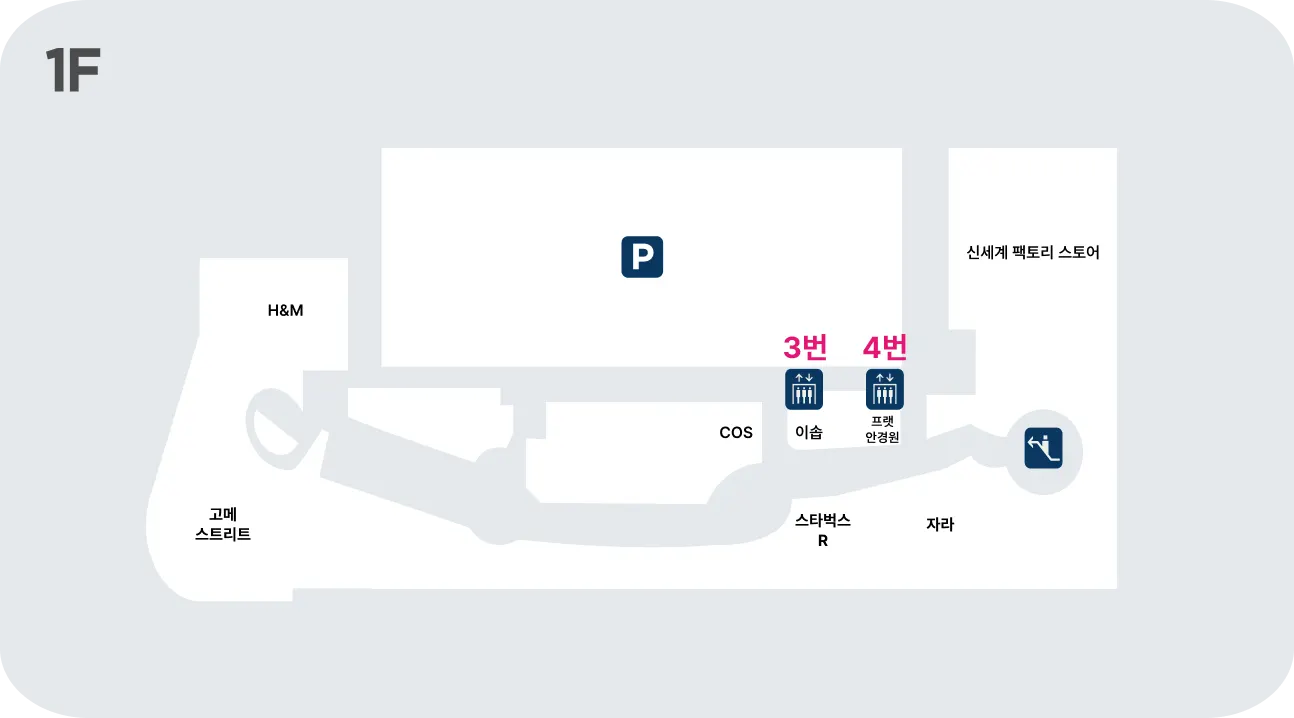 3번, 4번 엘리베이터 이용하여 4층 이동 후 뷰티빌리지로 이동